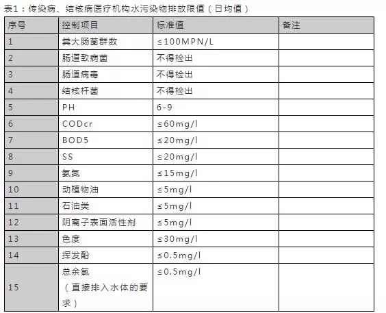 1、傳染病和結(jié)核病醫(yī)療機(jī)構(gòu)污水排放一律執(zhí)行表1的規(guī)定