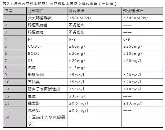 表2:綜合醫(yī)療機(jī)構(gòu)和其他醫(yī)療機(jī)構(gòu)水污染物排放限值(日均值)